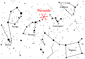 연중 최대의 유성우인 페르세우스 유성우가 8월 12일 저녁 8시 30분에서 11시 사이에 극대를 이룹니다. ZHR(이론적으로 완벽한 대기 조건에서 복사점이 천정 근방에 있을 때 한 시간 동안 보이는 유성의 갯수)이 100에 이릅니다.