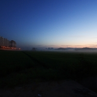 Canon EOS 350D + Sigma 10-20mm F4-5.6 EX DC HSM 경기도 시흥시 하상동, 2006년 8월 8일, 05:17:07 이류 안개 - 근처 물왕저수지에서 매우 습한 공기가 새벽의 비교적 서늘한 대지 위로 이동해왔습니다. 습한 공기의 기온이 서늘한 대지로 인해 이슬점 온도... -