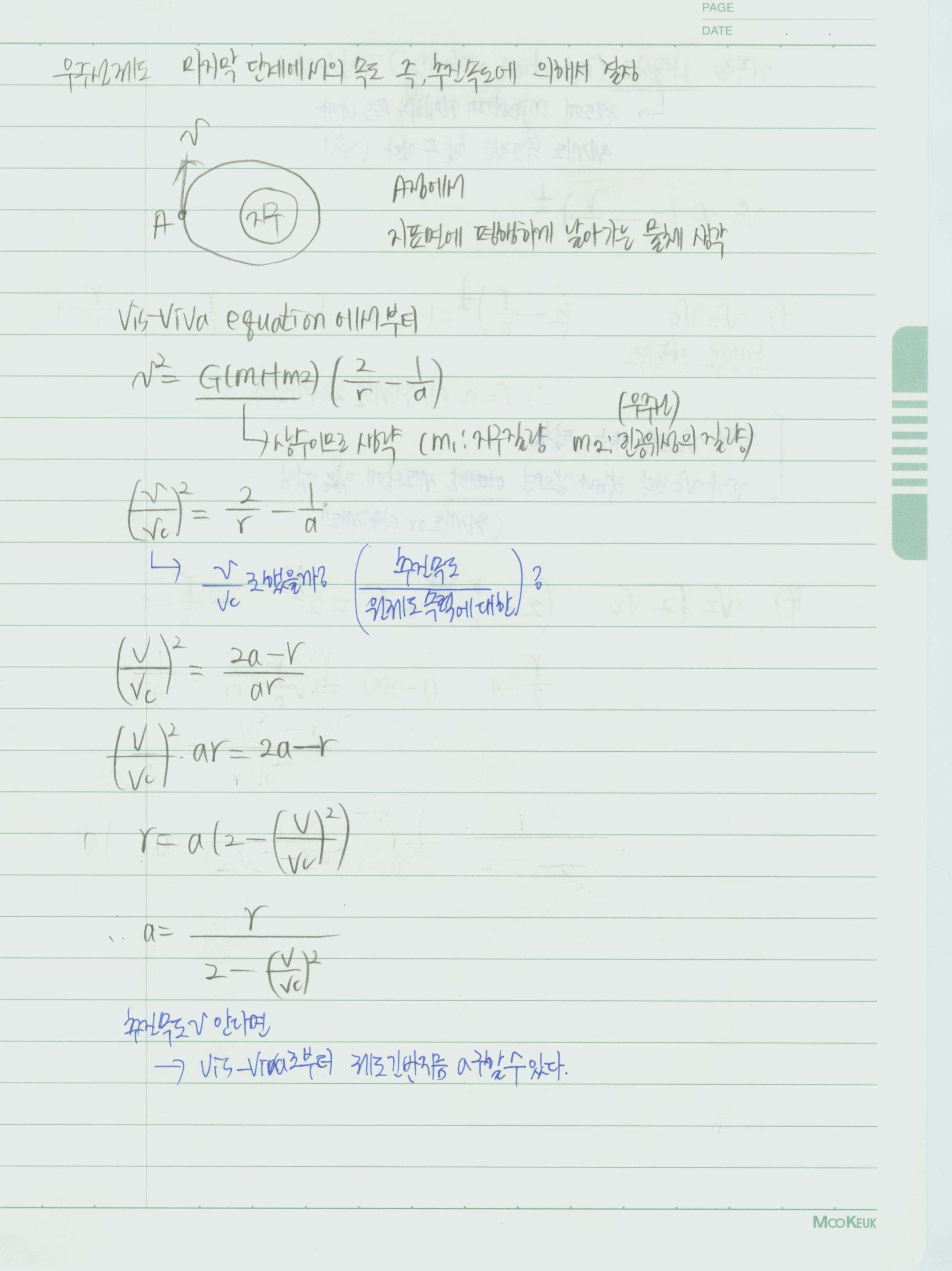 비스비바 식에서 v를 구하는데, 왜 추진속도/사출속도로 하나요?