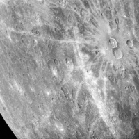대상 천체 : 수성 탐사선 : 매리너 10호 제작 : Calvin J. Hamilton 저작권 : Calvin J. Hamilton 참조 번호 : FDS 275 두 개의 큰 운석구덩이, 그리고 방사상으로 밝게 뻗어 있는 무늬와 무리를 볼 수 있습니다. 이 두 개의 운석구덩이의 지름은 40 km 가량 됩니다. 무리와 방사 무늬가 수성 표면의 다른 지형들마저 덮고 있는데, 이걸 보면 무리와 방사 무늬가 최근에 형성되었다는 점을 알 수 있습니다. [ 푸른행성의 과학 - http://www.skyobserver.net/ ] -