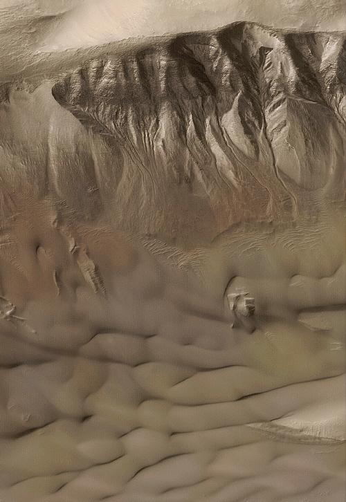 여기서 보는 것은 그 중에서 Newton 분지에 있는 협곡들로서 2002년 10월 7일에 발표된 사진입니다.
