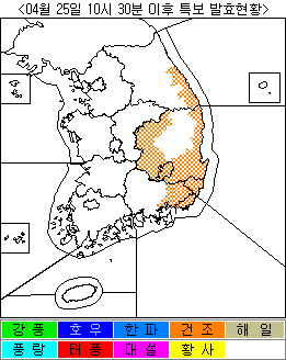 특보 현황 : 2006년 04월 25일 10시 30분 이후 (2006년 04월 25일 10시 30분 발표)
