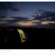 2010년 5월 16일 달과 금성의 회합 모습입니다. 경기북과학고등학교에서 바라본 호명산의 철탑 옆의 달과 금성이 산등성이 너머로 지고 있습니다. Canon EOS 5D M...