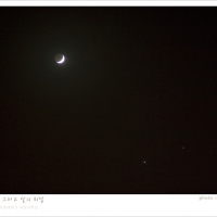 어제(12월 1일)는 금성과 목성 그리고 초승달 가운데 초승달이 가장 먼저 졌지만, 오늘은 초승달이 가장 늦게 졌습니다. 금성과 목성은 이미 두꺼운 대기에 묻혀버렸고, 초승달도 빛을 잃어, 가로등과 거리를 밝게 노출하여 찍는데도 적당한 밝기로 모습을 드... -