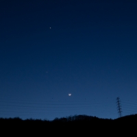 2012년 3월 25일 호명산 너머 금성-목성-달의 회합입니다. 경기북과학고등학교 자연탐사동아리 <파인만의 무지개>, 천체관측동아리 <풀체리마>, 한국아마추어천문학회 경기지부 회원들과 함께 한 관측회에서 촬영하였습니다. youngwoo cho, 2012_03_36KST, @gb... -